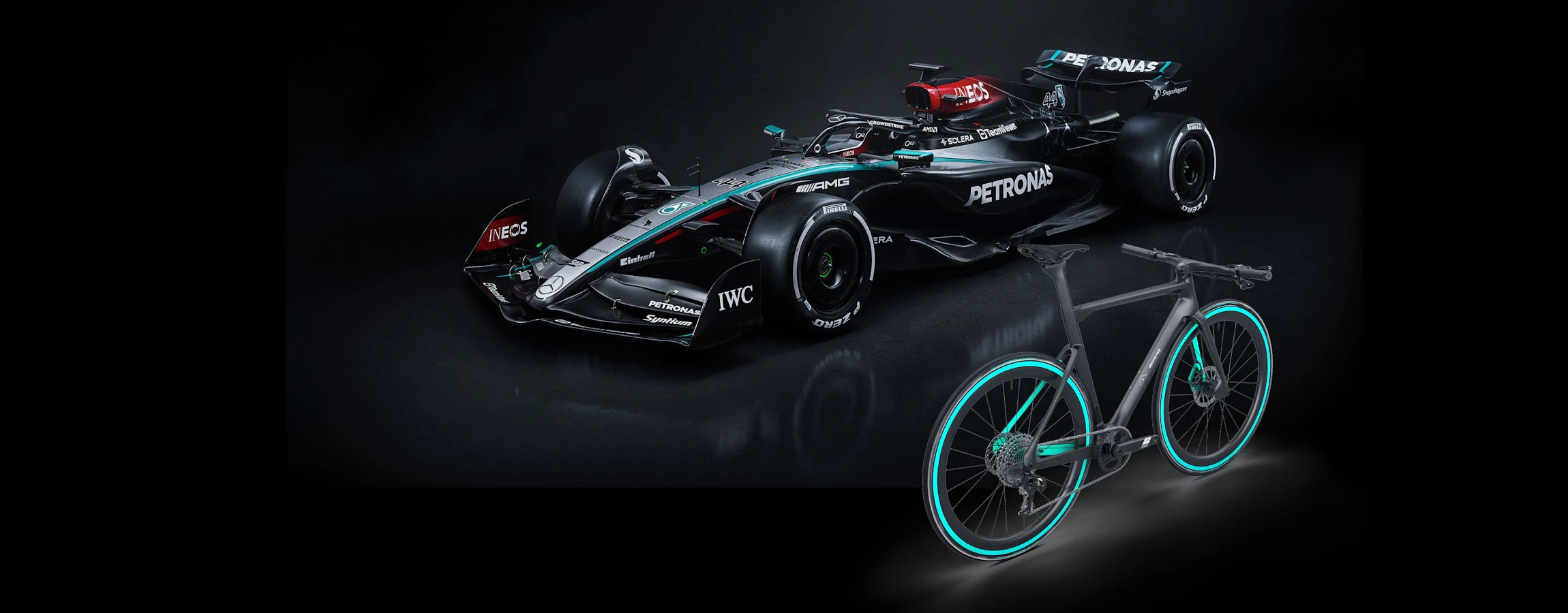 À l'intersection de la fonction, de la forme et de la performance se trouve la Mercedes-AMG F1® Team V15 Urban Edition, un vélo urbain agressif tout en carbone, doté d'un guidon carbone intégré sur mesure et de roues à section profonde. Proposé en édition limitée, il arbore un design inspiré de celui de la F1.® la voiture de course de l'équipe et incarne son mantra — « Tout est dans la performance. »
